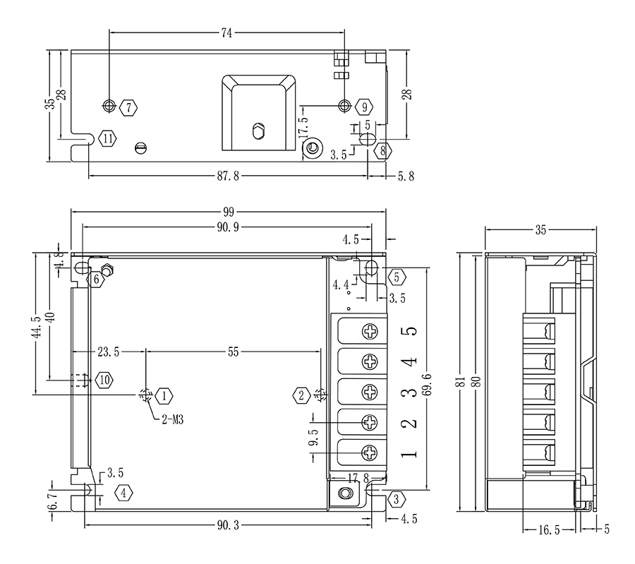 螺丝固定 | ①--② ⑦--⑨ | M3 | 5mm | 6.5kgf.cm |