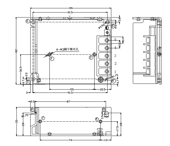 注塑机械手控制系统系列为HC-S3/HC-S5型号产品,安装时尺寸图如下。